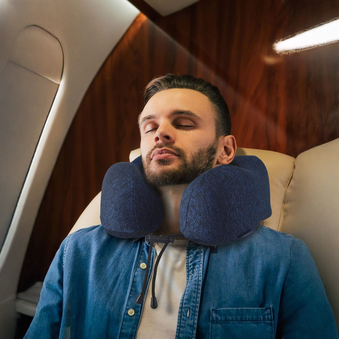 Simply place the travel neck pillow around your neck while traveling for added support. The memory foam adjusts to the shape of your neck, providing comfort during long flights, car rides, or even naps.