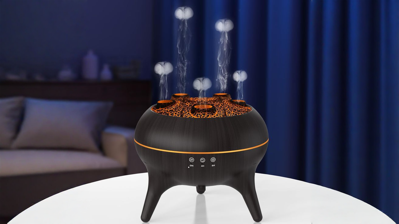 Flame Humidifier & Jellyfish Aroma Diffuser with Gradient Night Light